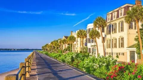 Enjoy a scenic harbor walk, stop by the Pineapple Fountain, and take in the pastel houses of Rainbow Row, one of Charleston’s most photographed sites.